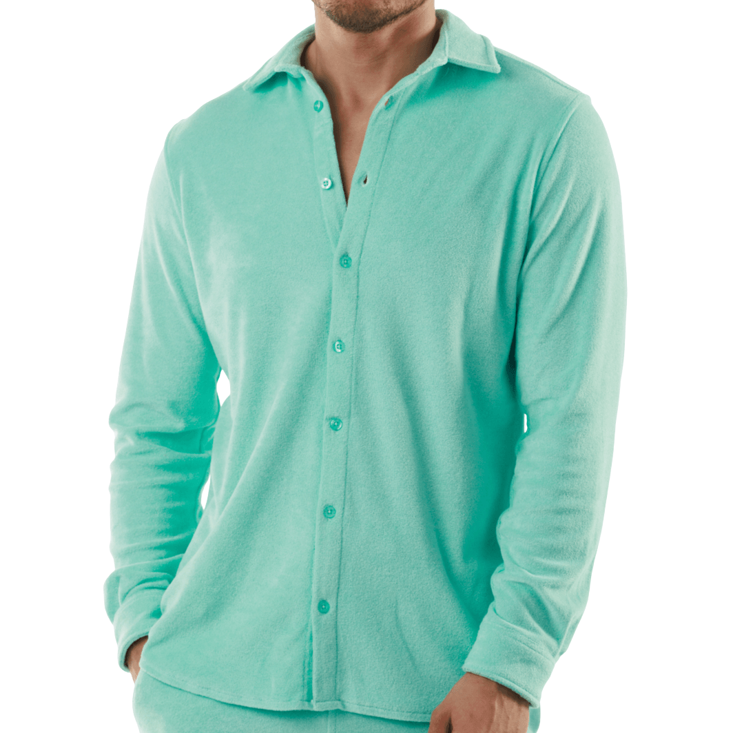 Experience luxury and comfort with the Bain De Mer long-sleeve button up towelling shirt.