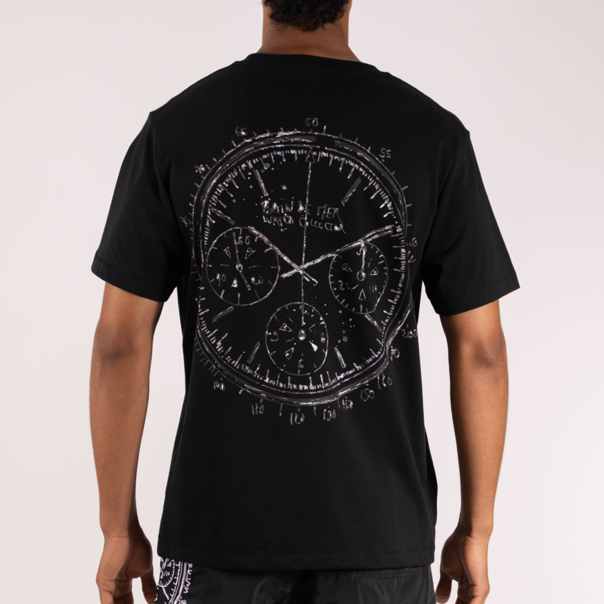 CAMISETA CON ESTAMPADO DE COLECCIONISTA DE RELOJES | NEGRA