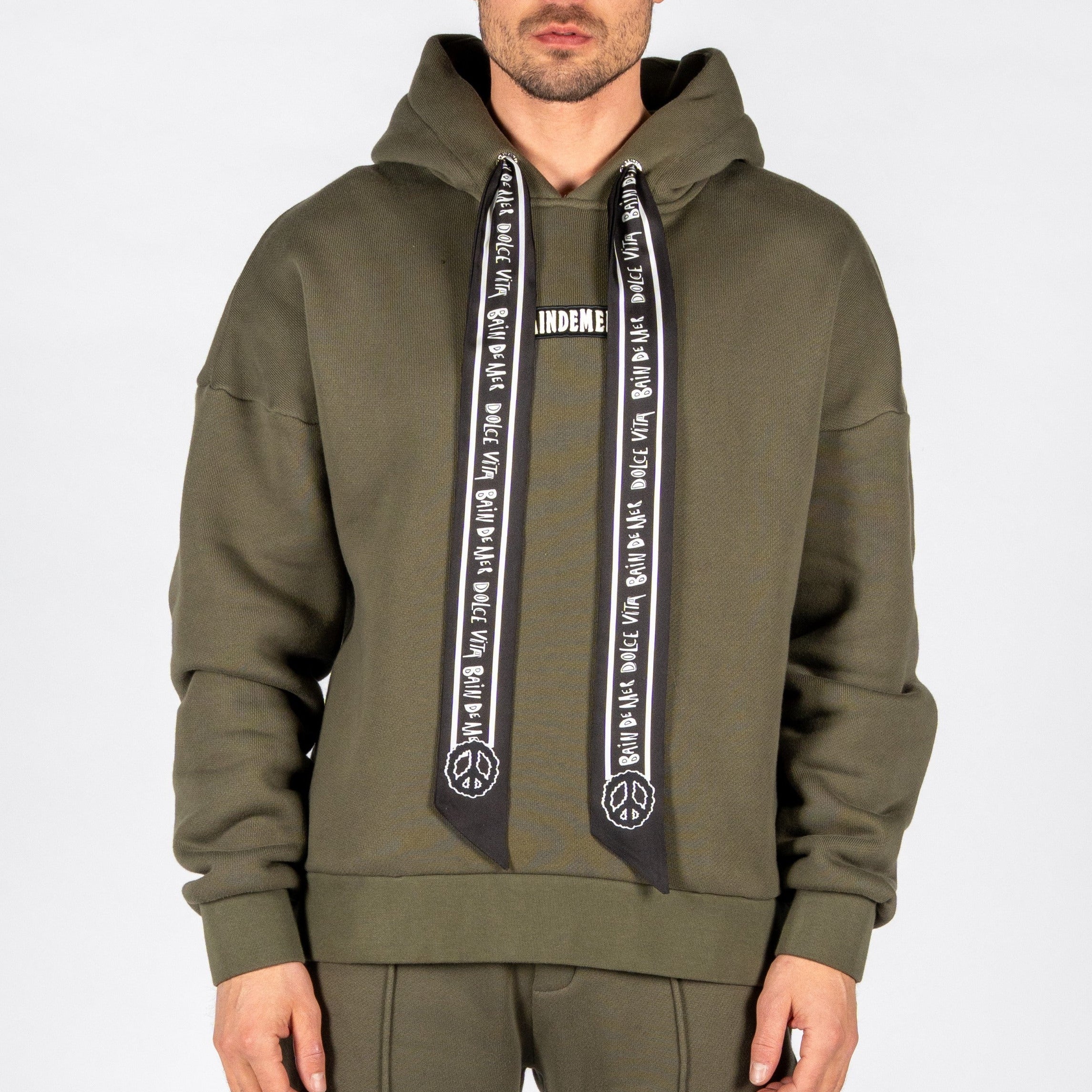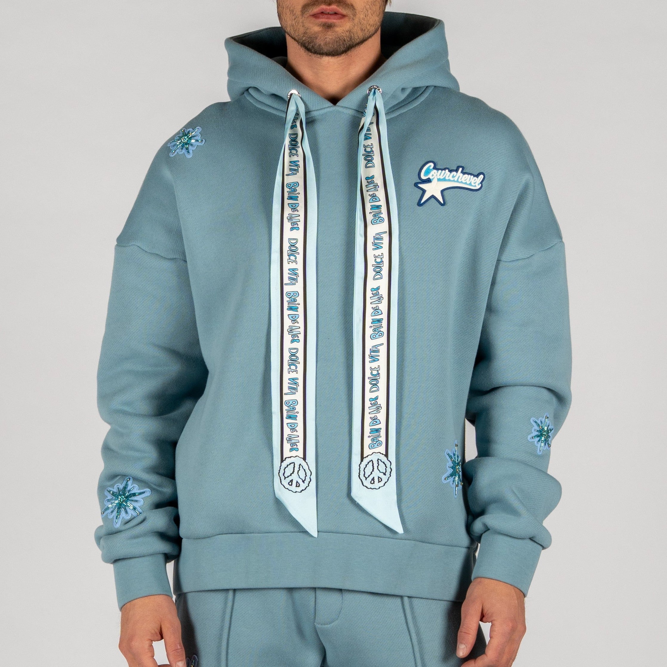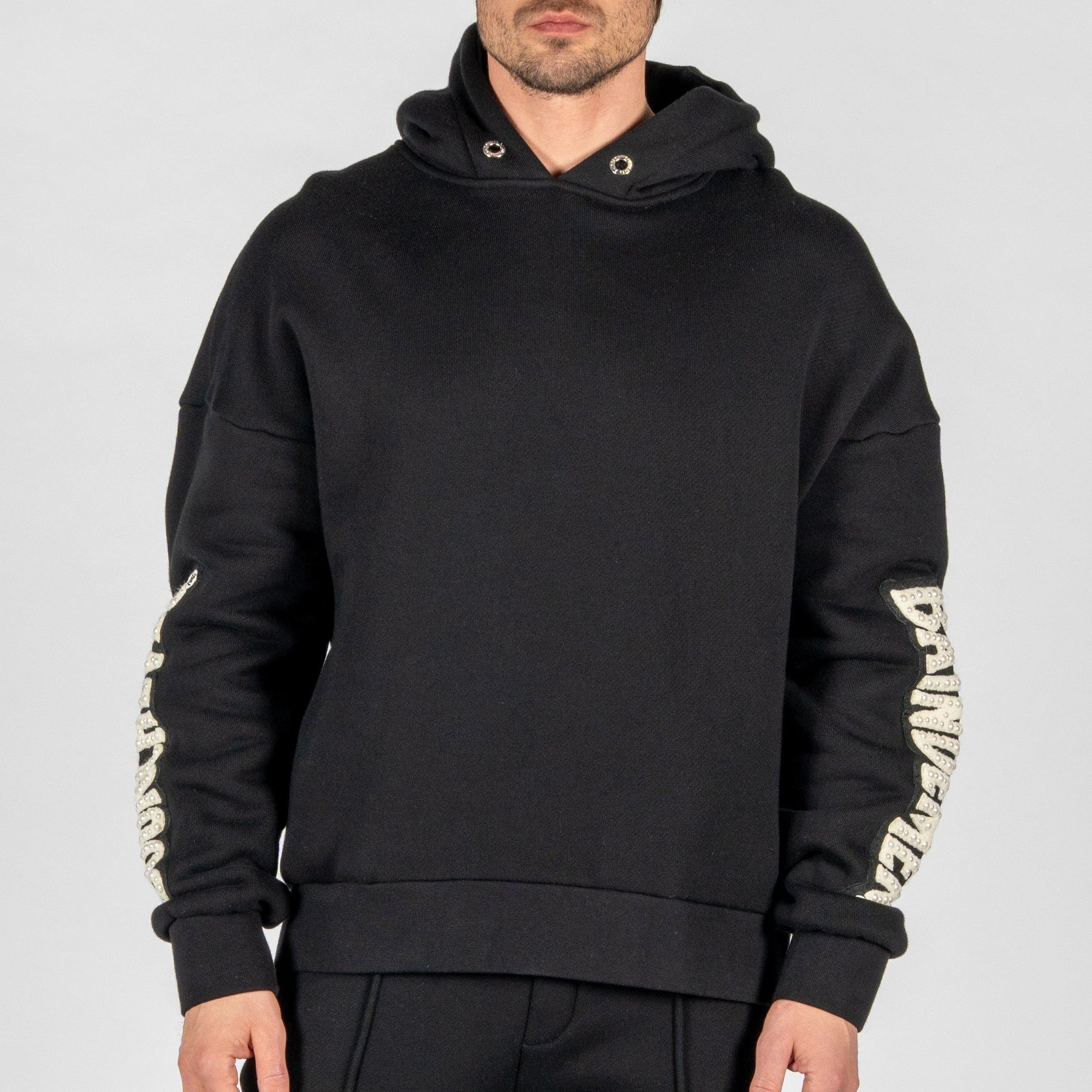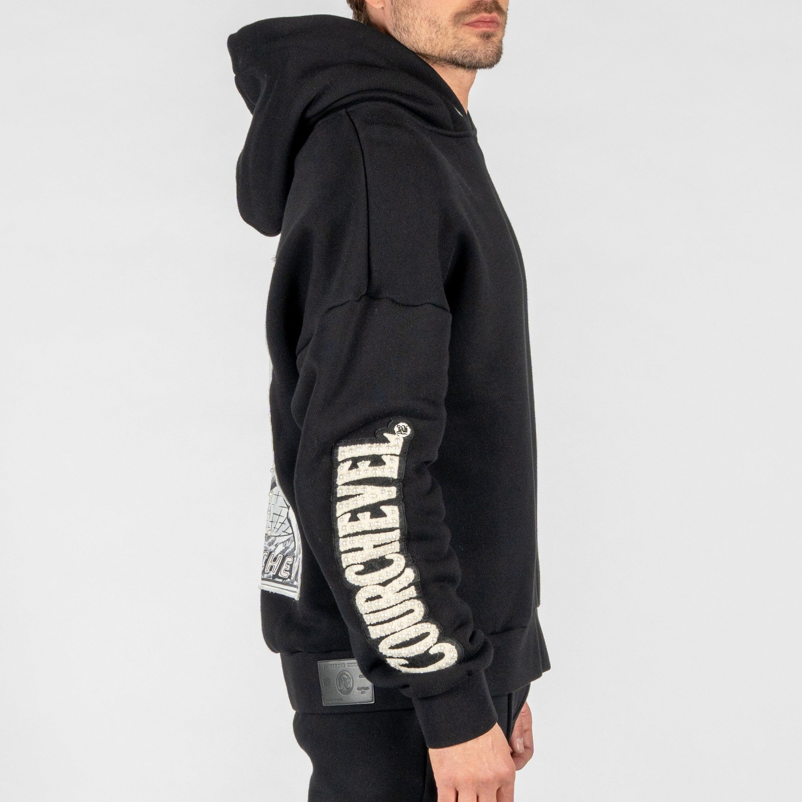 Finished with handmade patches, each hoodie is produced in strictly limited quantities, making every piece exclusive and individually distinctive.