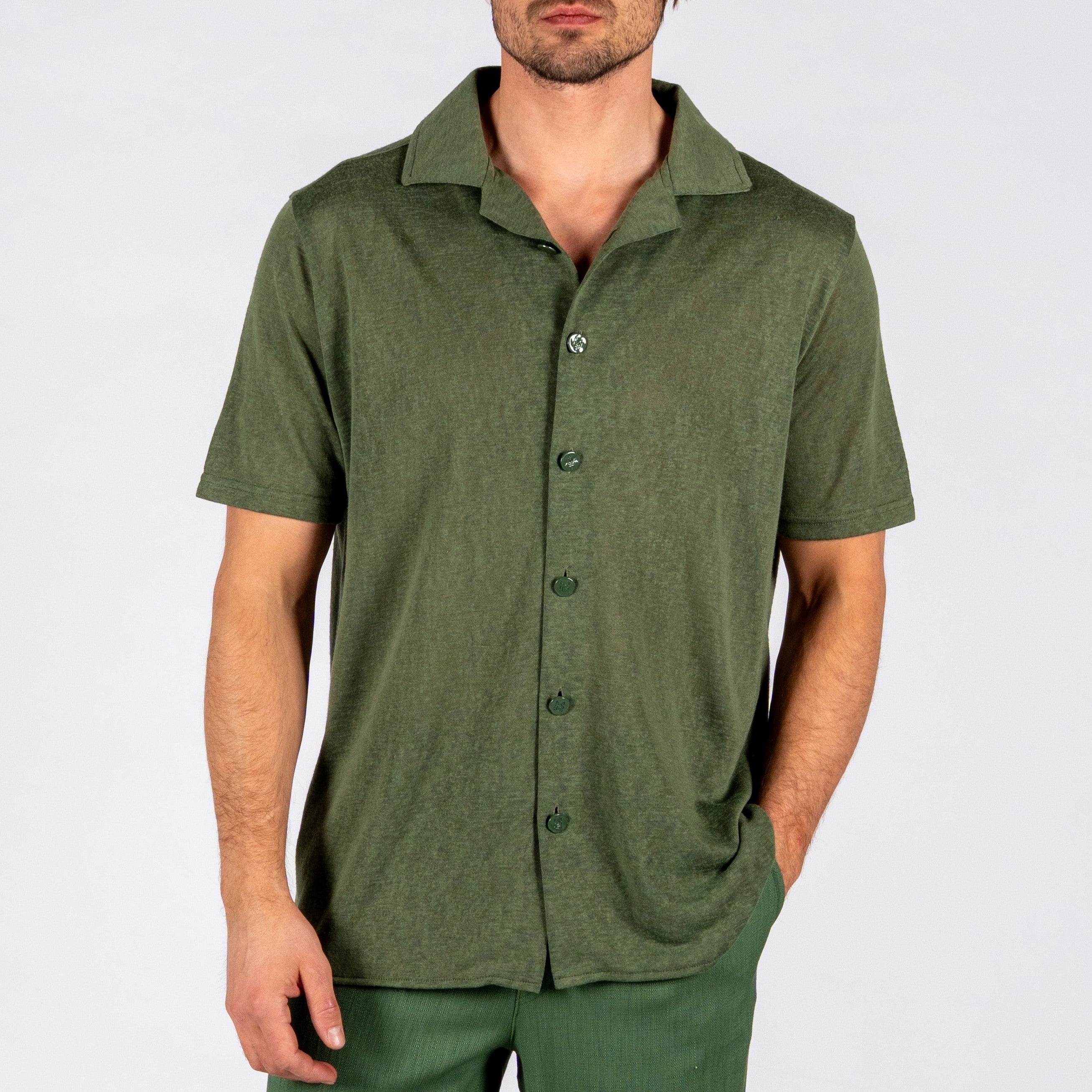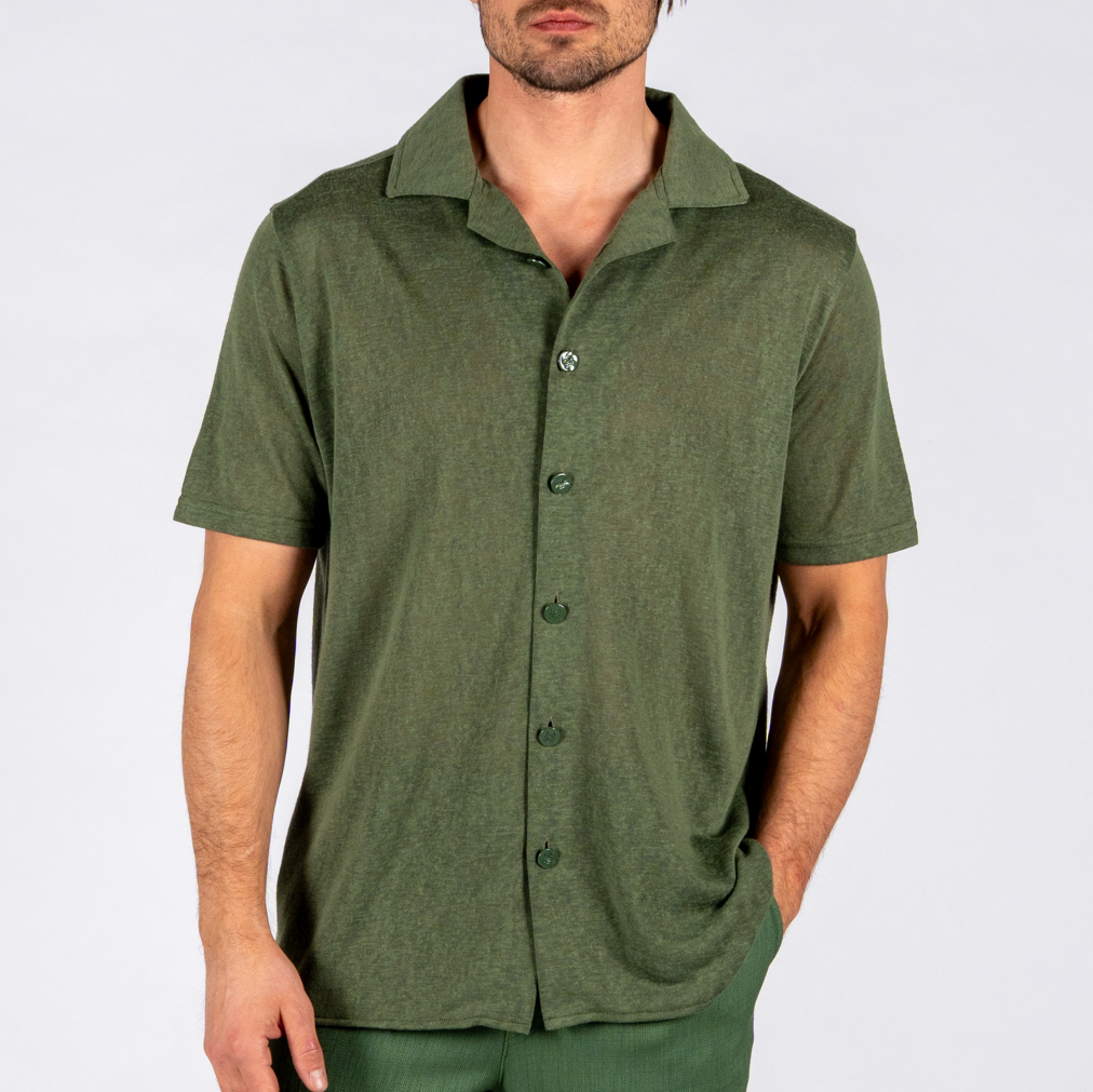 T-shirt à manches courtes en lin BDM | Vert militaire